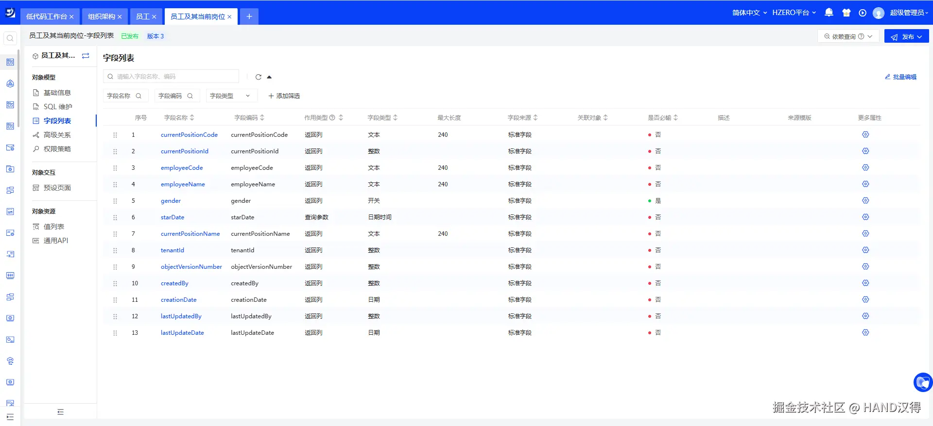 ⑥ 支持高级关系配置、权限策略配置、预设页面、值列表配置,通用API查看,配置方式可以参考 《快速构建业务模型》 。通用API当前版本只支持查询接口。