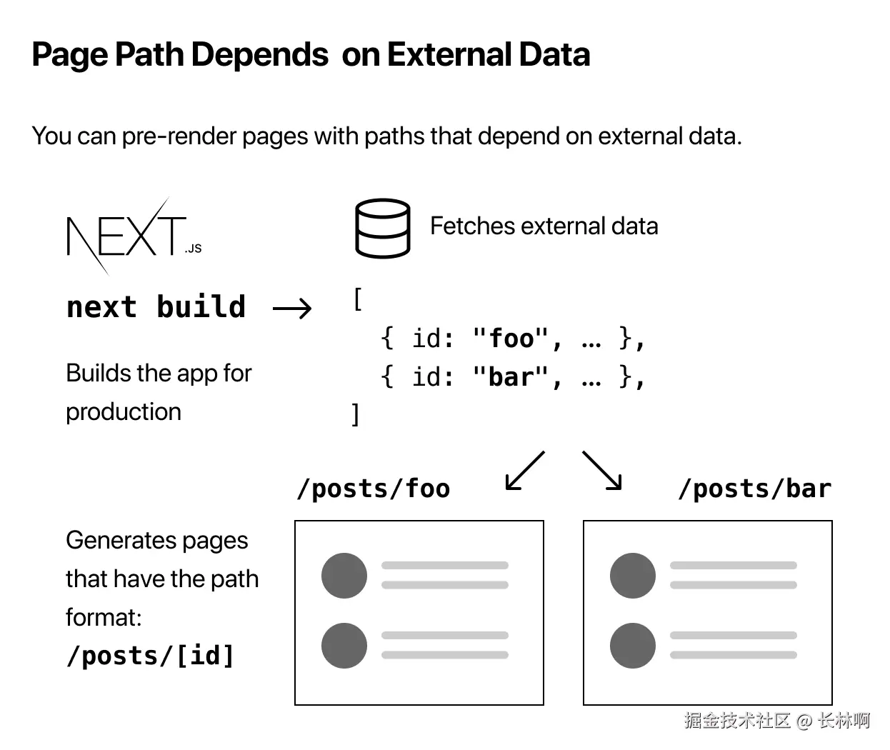 这段代码中用到了 as 属性,这个属性是因为之前设计 href 属性在运行时不能被改变,跳转地址只能是 "/post/[pid]" 这种形式使用,但为了让浏览器显示正确的地址就增加了 as 属性,它是浏览器 URL 地址栏中展示的地址。