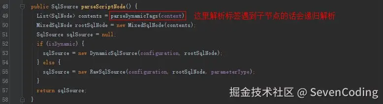 parseDynamicTags方法的返回值是一个List,也就是一个Sql节点集合。SqlNode本文一开始已经介绍,分析完解析过程之后会说一下各个SqlNode类型的作用。
