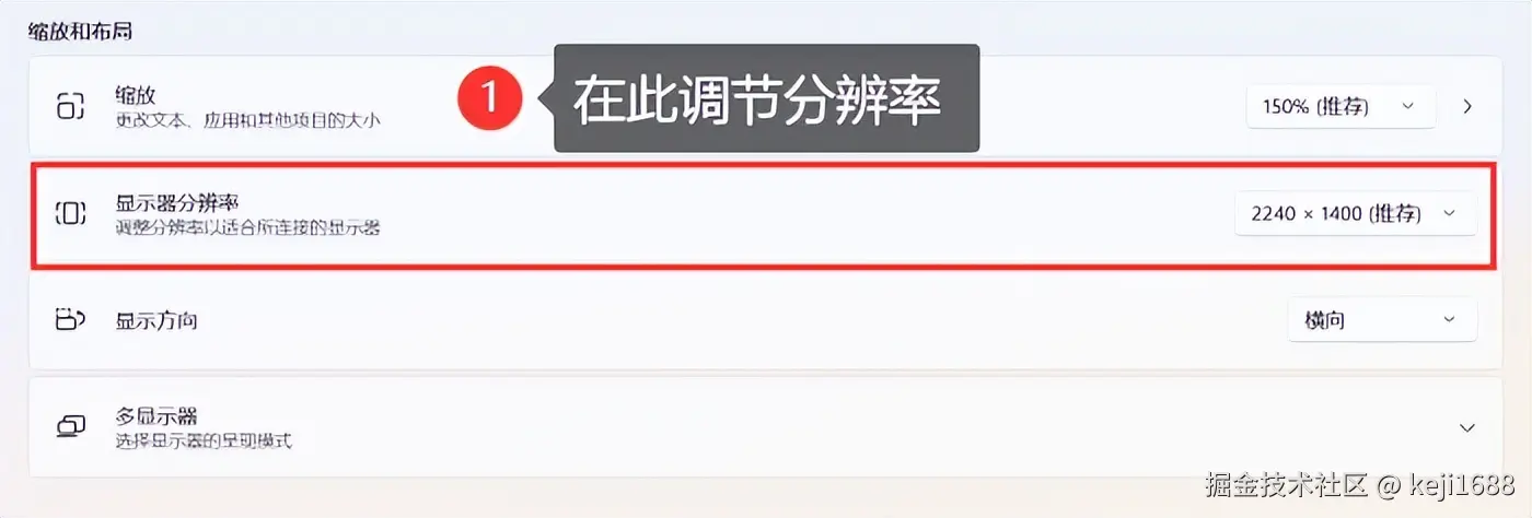 因此,我们可以进入电脑的 【显示设置】 中尝试调整 【显示器分辨率】 至一个更高的、适合的值以解决问题。