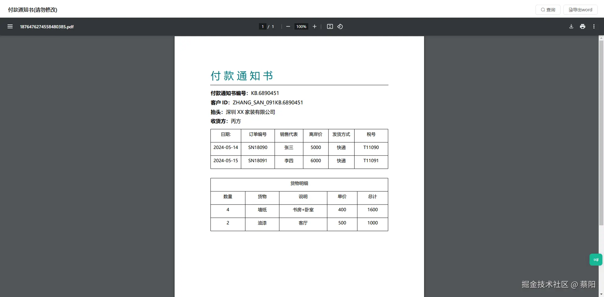 - 支持 Word 模板设计: Word 模板动态绑定数据,生成动态文档。