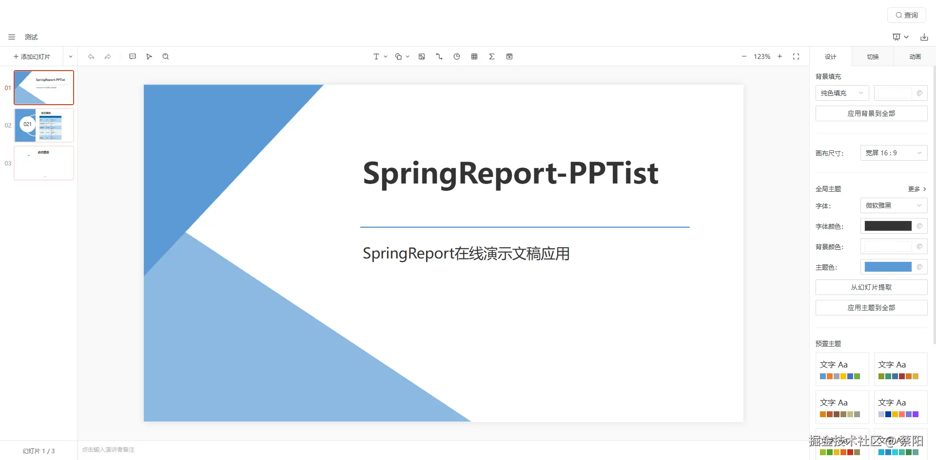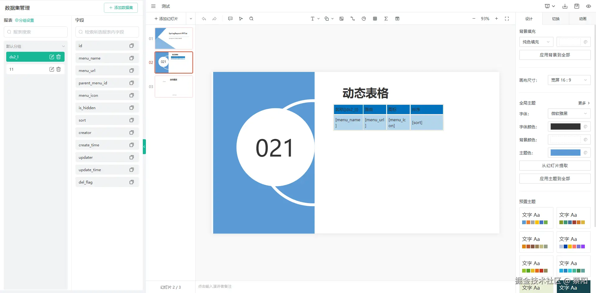 PPT 设计器: 整合集成开源项目PPTist,设计PPT模板,动态绑定数据集,生成动态填充数据的PPT文档