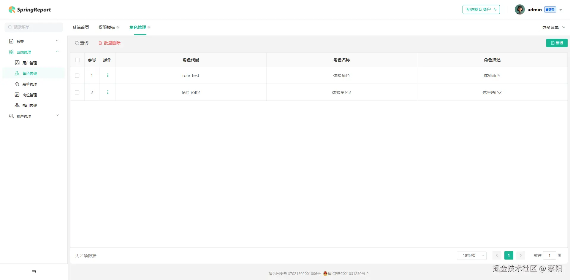 角色管理功能帮助您维护角色信息,并允许为不同的用户分配相应的角色。每个角色可以拥有不同的菜单功能权限和报表访问权限。这样,您可以控制哪些用户可以访问哪些报表,甚至细化到报表中的某个 sheet 页面。