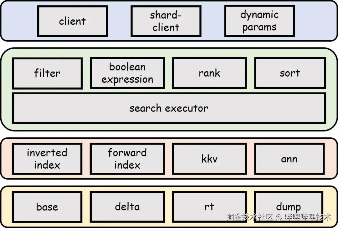 执行层 - 执行具体检索逻辑,支持布尔检索、过滤、排序等;