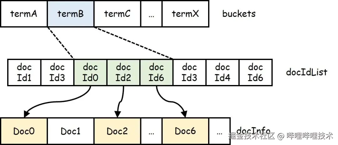 - 正排索引为DocId到DocInfo的映射;