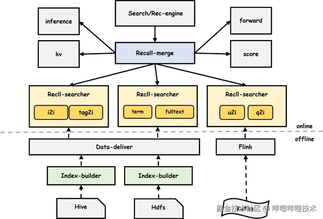 面对这些挑战,经过多轮迭代与架构升级,形成了目前基于B站业务特点的大规模召回系统。本文将从工程实践的视角出发,深入介绍B站搜推召回系统的架构设计与实现。