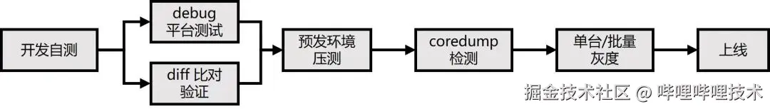 首先,持续完善开发-测试-发布流程,提升上线前的异常发现能力,力求将潜在风险扼杀在摇篮之中;基于功能完善的debug平台,及时验证召回各阶段结果是否符合预期;接入班车流水线,在上线推全前对召回服务进行coredump检测,性能劣化检测等。