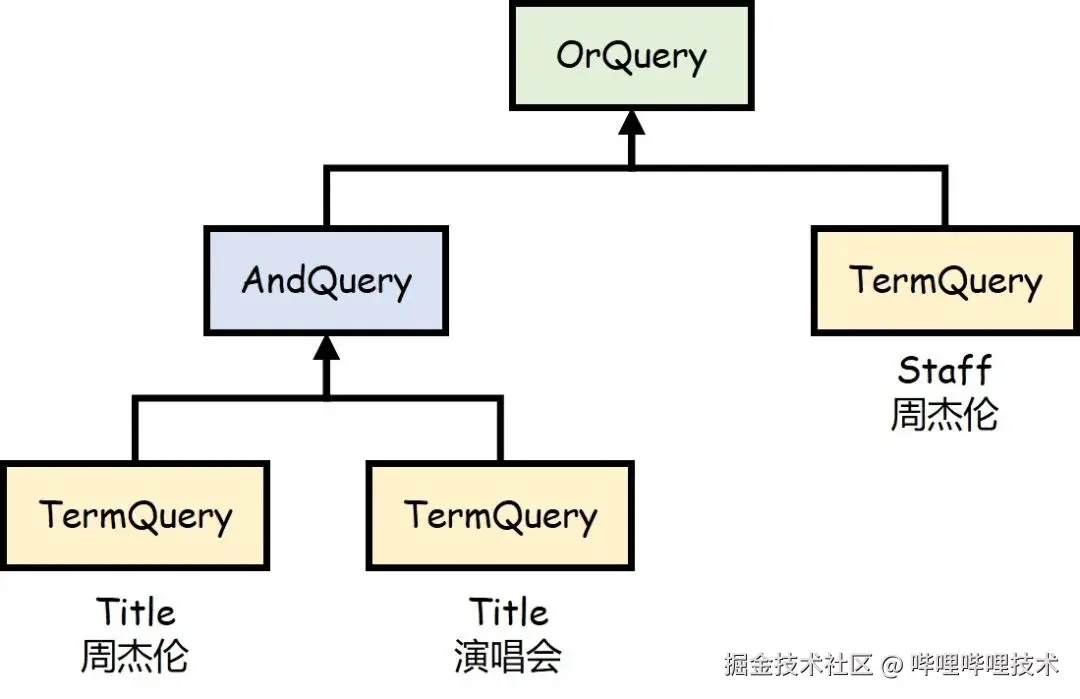 检索时首先根据query的分词建立查询表达式,例如“周杰伦演唱会”,分词后再通过“周杰伦”和“演唱会”分别查询索引做表达式运算获得召回结果。
