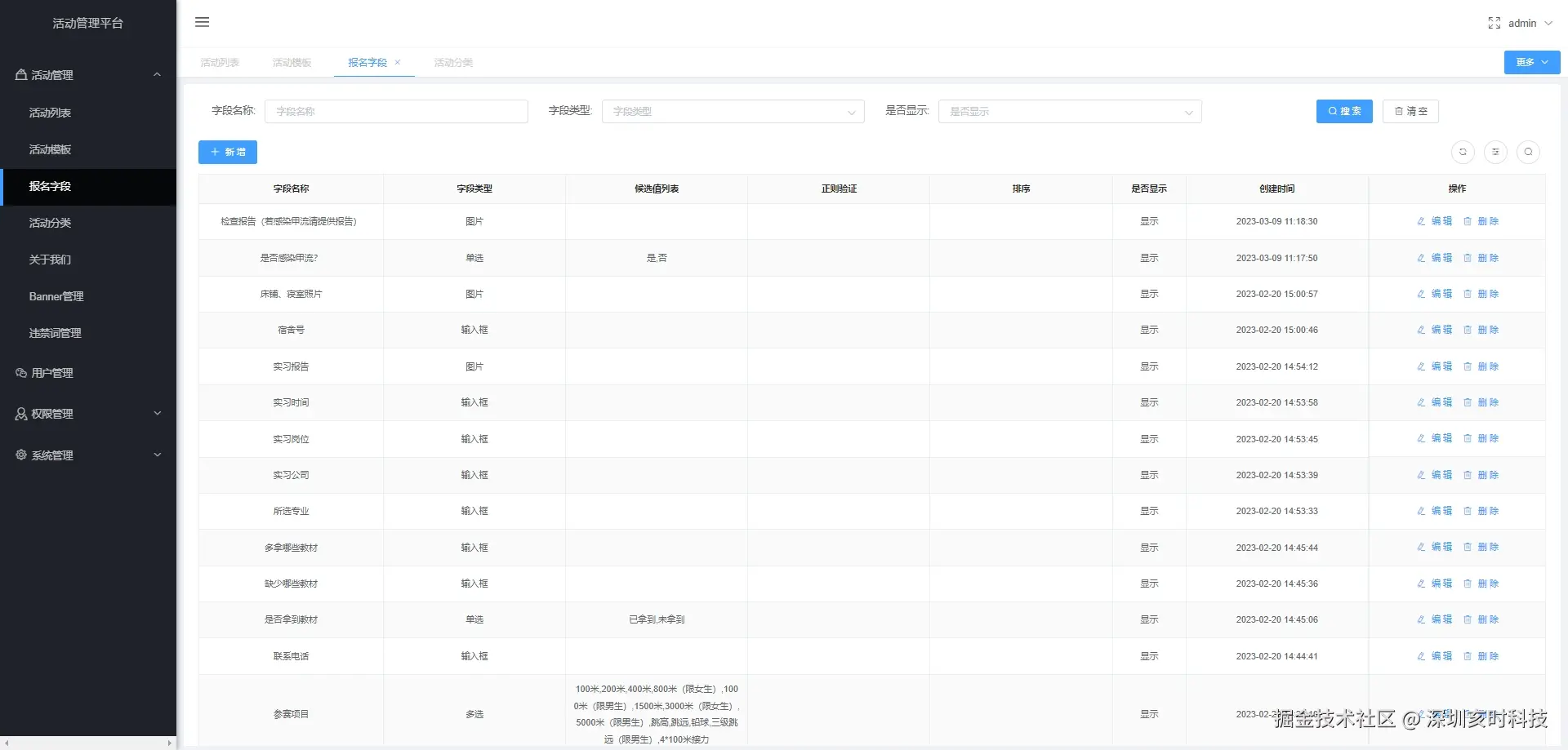 - 报名字段:允许管理员自定义活动报名表单的字段,如姓名、联系方式、参与人数等,以收集参与者信息。