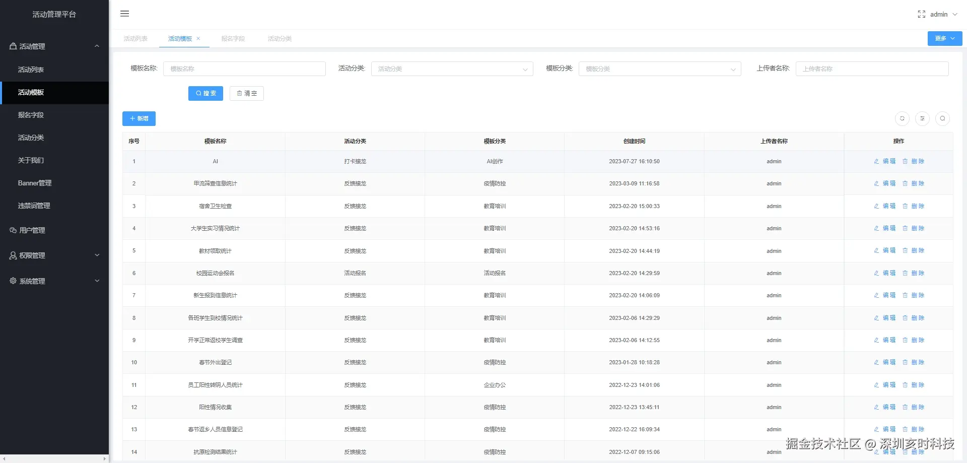 - 活动列表:展示所有活动的概览,包括活动名称、时间、状态等,方便用户快速浏览和选择感兴趣的活动。