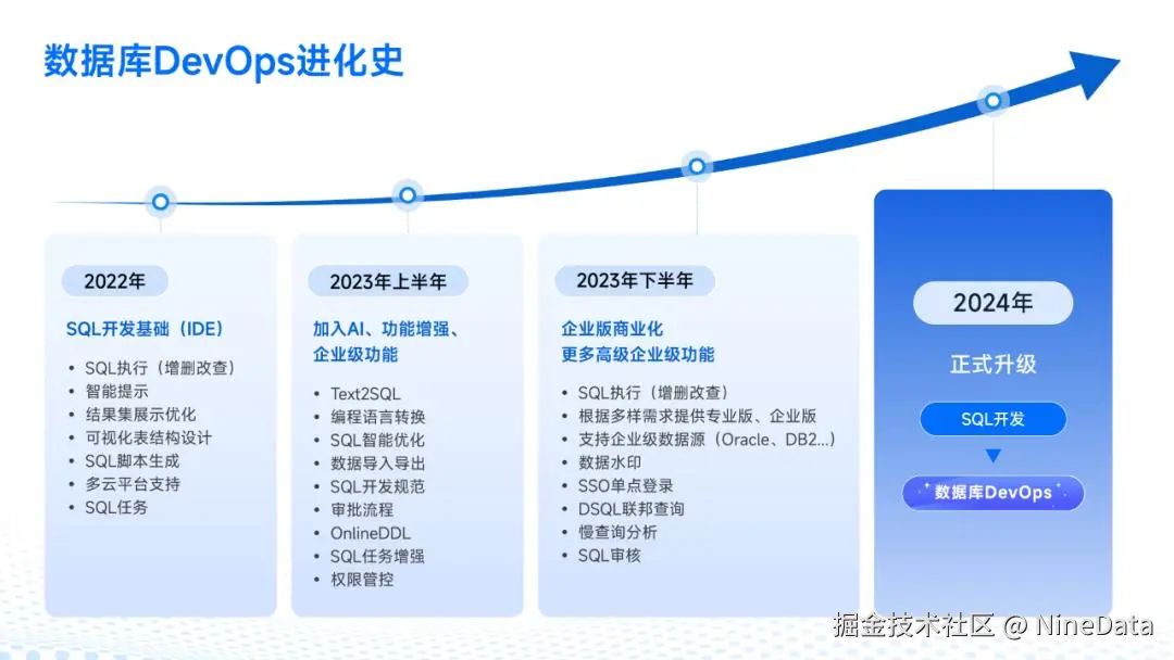 - SQL 开发功能全面升级,打造企业级数据库 DevOps 解决方案,让 DBA 与研发协同效率提升 5 倍,发布双因子认证、敏感数据识别、数字水印等安全能力,引领企业数据库安全高效管理的发展和最佳实践;