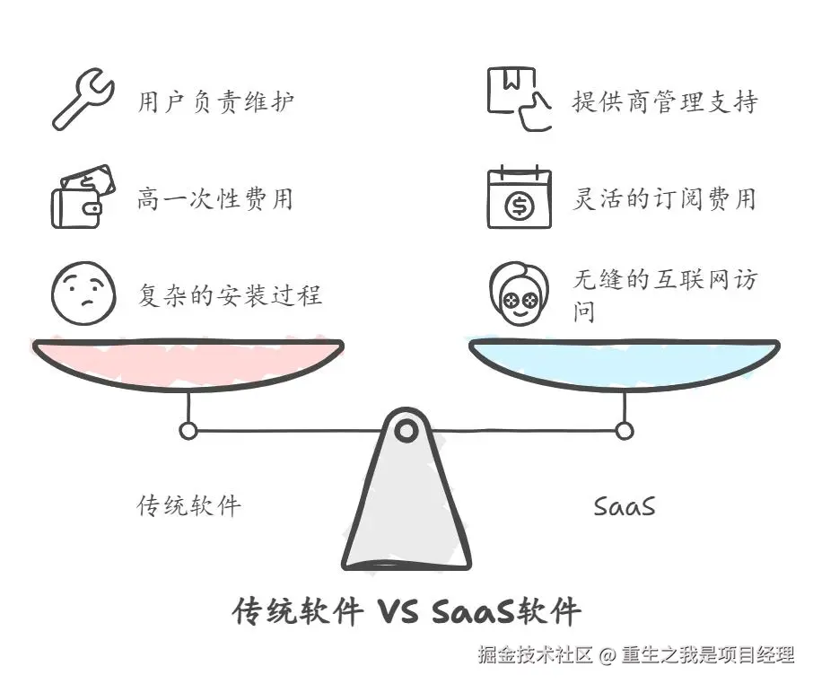 SaaS与传统软件的最大区别在于交付方式、维护方式以及费用结构。