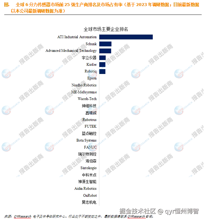 根据QYResearch头部企业研究中心调研,全球范围内6分力传感器生产商主要包括ATI Industrial Automation、Schunk、Advanced Mechanical Technology、宇立仪器、Kistler、Robotiq、Epson、Nordbo Robotics、ME-Meßsysteme、Wacoh-Tech等。2023年,全球前五大厂商占有大约61.0%的市场份额。