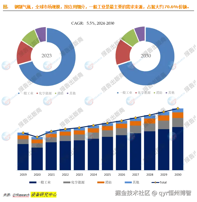 据QYResearch调研团队最新报告“全球钢制气瓶市场报告2024-2030”显示,预计2030年全球钢制气瓶市场规模将达到27.6亿美元,未来几年年复合增长率CAGR为5.5%。