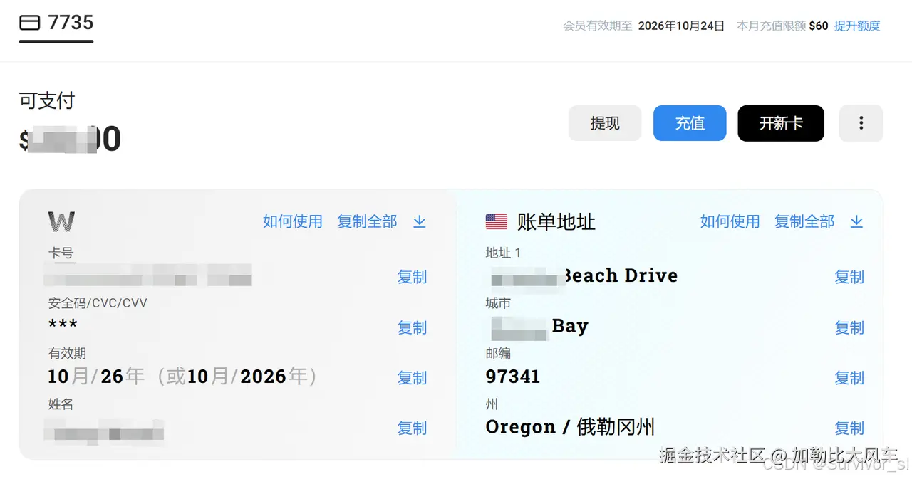 跟ChatGPT和Claude他们一样,Gemini目前也是不支持国内用户使用的,所以我们也只能绑定海外支付卡来订阅。我们可以借助wildcard等平台,申请一张海外支付卡,再将此卡片信息输入到Gemini订阅页面,从而完成订阅。