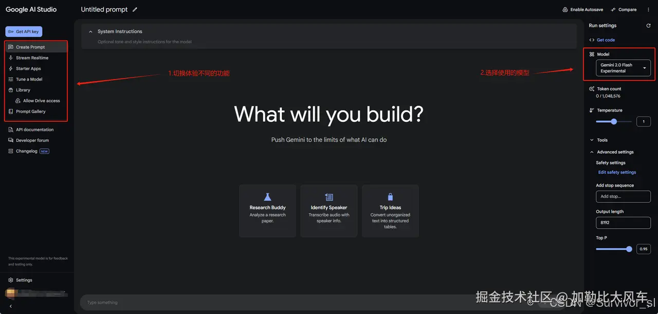 作为一个谷歌提供的基于浏览器的集成开发环境(IDE),Google AI Studio主要是帮助开发者快速集成和使用最新的多模态生成式AI模型,特别是谷歌自家的Gemini系列模型。