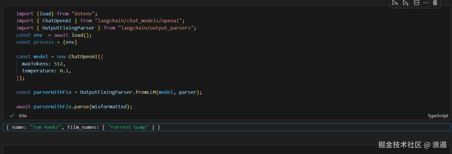 在上面的这段代码中 ,其实我们是在使用大模型ChatOpenAI , 修正parser , 我们可以假设一个场景 :