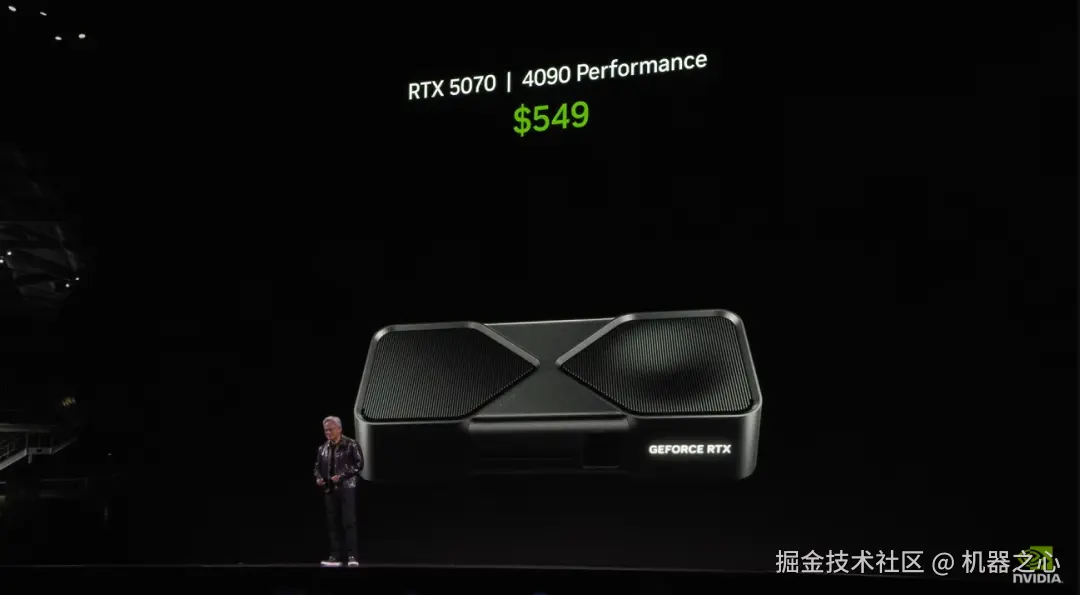 在揭晓价格时,老黄玩了一个花招:还记得 RTX4090 的价格吧?现在你买 RTX5070,549 美元(国行售价 4599 元)就可以买到 4090 的性能。