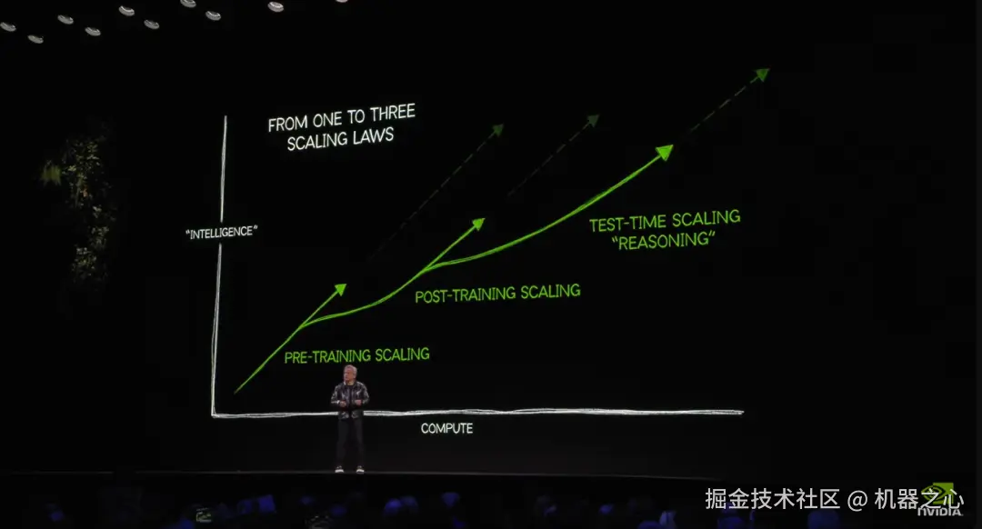 在英伟达看来,Scaling Laws 仍在继续,所有新 RTX 显卡都在遵循三个新的扩展维度:预训练、后训练和测试时间(推理),提供了更佳的实时视觉效果。