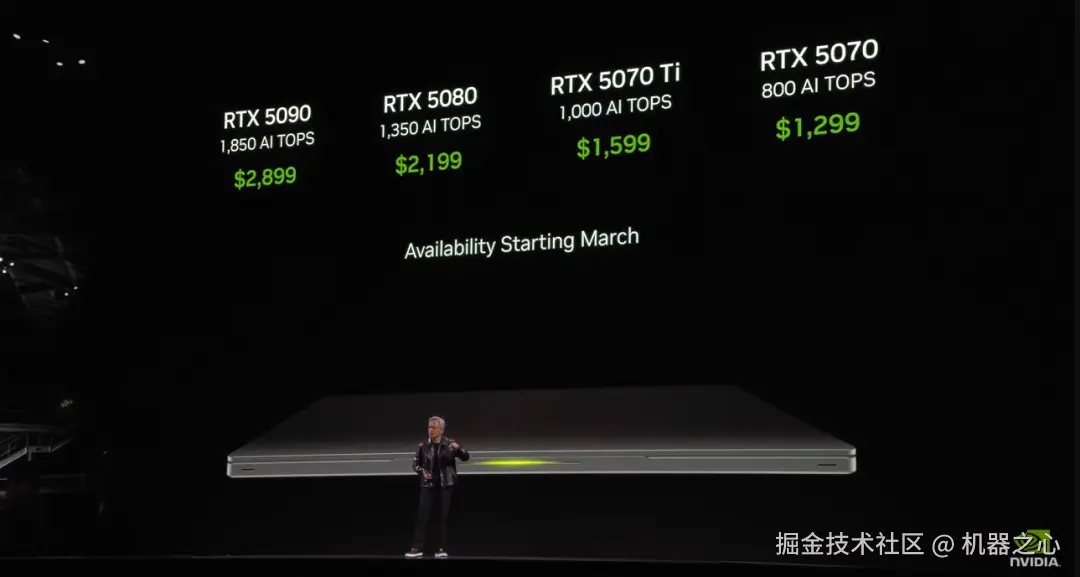 不过黄仁勋并没有仔细介绍各型号的基础性能,还要等到时的真机测试。预计最早在 3 月份,就会有搭载 RTX50 系列显卡的设备上市。