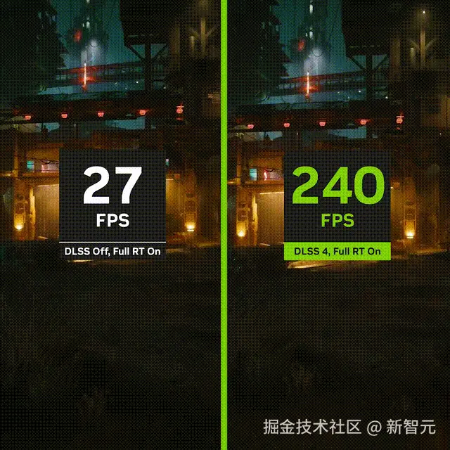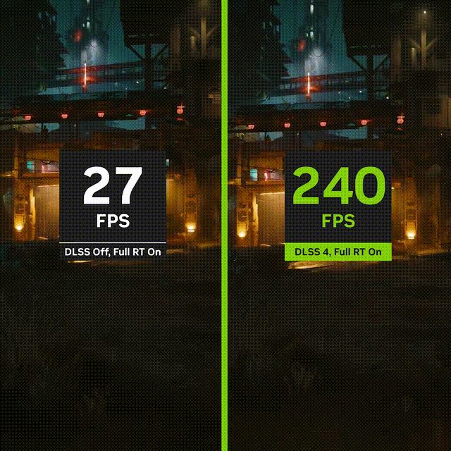 下一代 DLSS 包含了多帧生成技术,可以在每个传统帧的基础上生成最多三个额外的帧,使帧率比传统渲染提高了多至 8 倍。