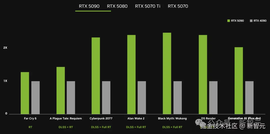 如此豪华的配置,再加上 DLSS 4 和 Blackwell 架构的加持,RTX 5090 的性能直接达到了 RTX 4090 的两倍之多。
