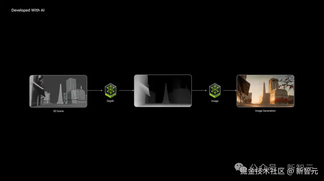 传统的光线追踪算法只渲染约 10% 的内容,相当于一个「粗略的草图」,然后由生成式模型实时地在一次前向传递中填充其余的细节。