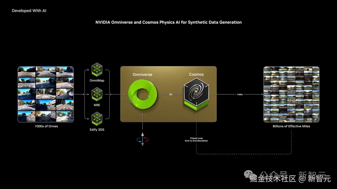 此外,Cosoms 还能与 Omniverse 两者结合使用,能够提供一个物理真实的多元生成器。
