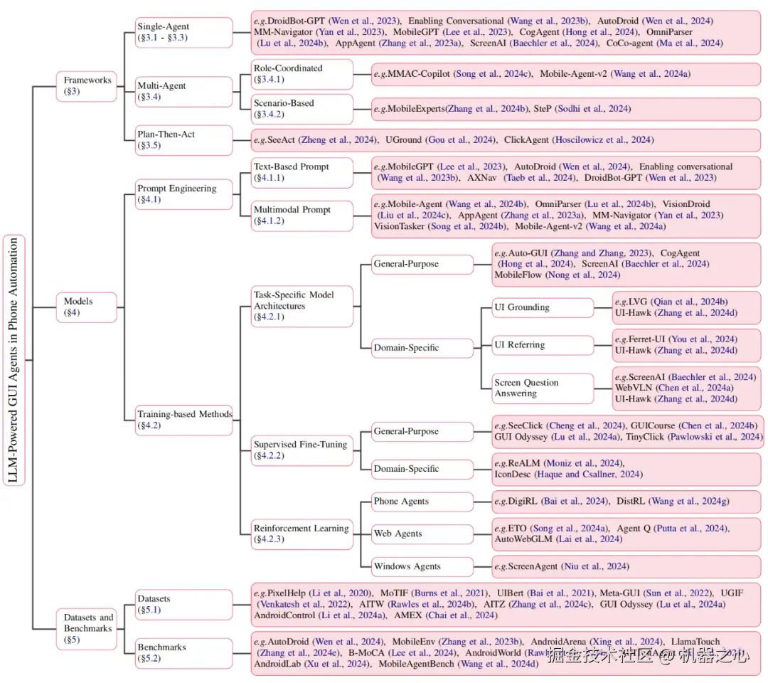 图 3 大模型驱动的手机 GUI 智能体文献分类