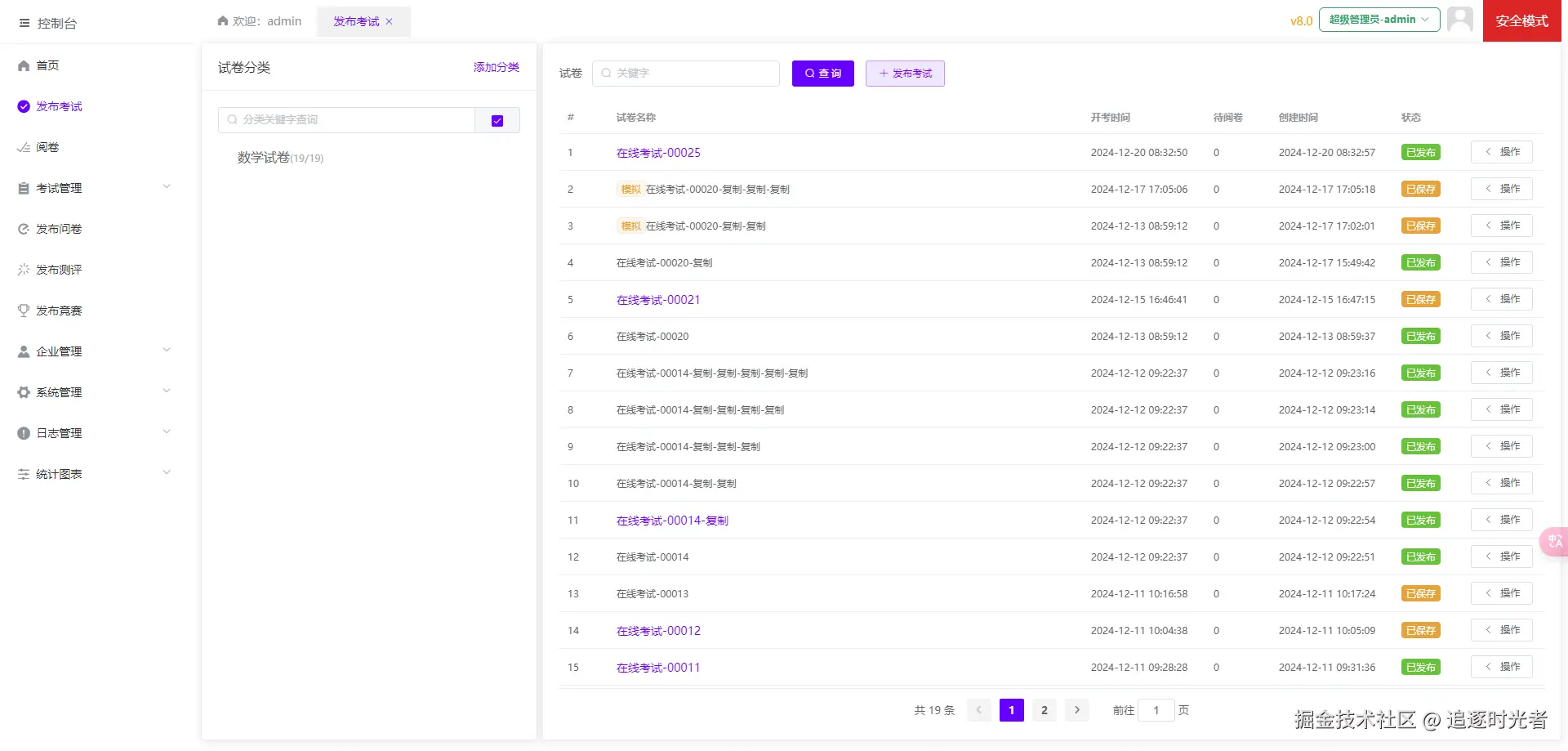 发布考试