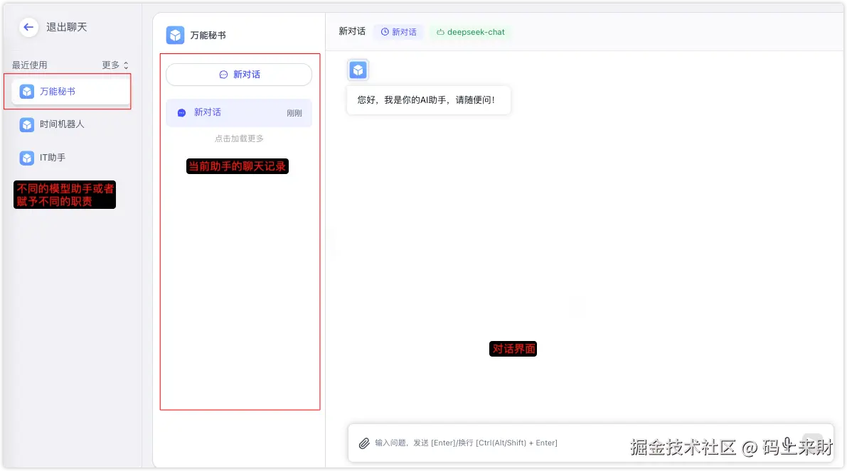 点击左侧聊天进入对话界面,就可以看到刚刚创建的模型助手了