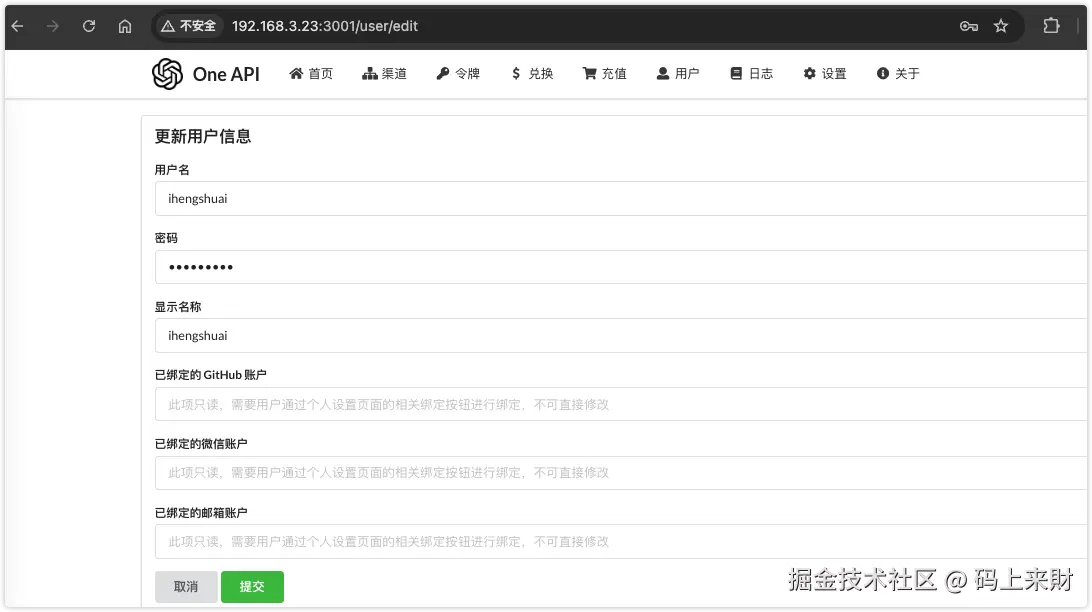 启动成功后使用浏览器打开 IP:3001 OneAPI,添加合适的AI模型渠道(OneAPI官方教程)