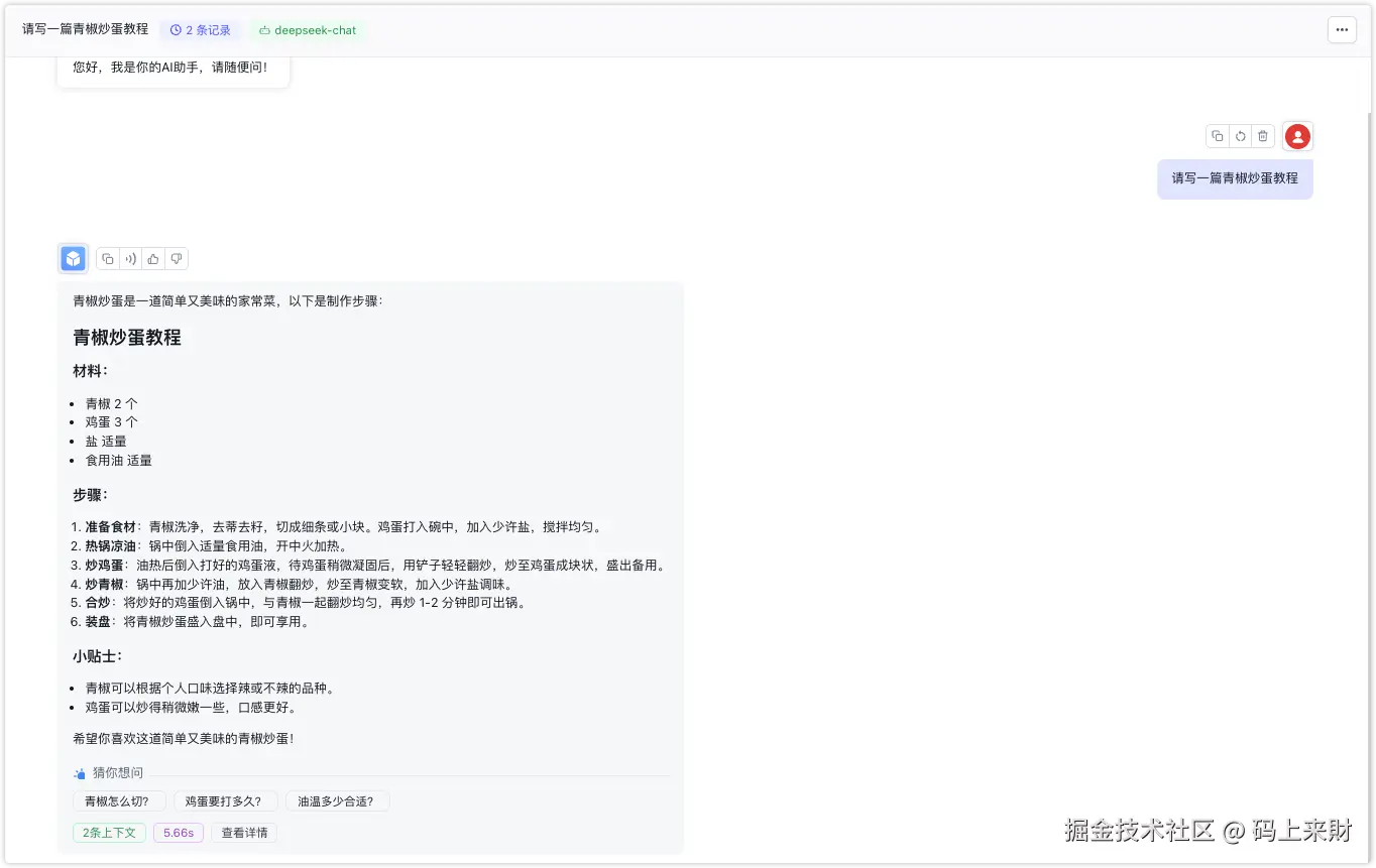 现在我们可以提个问题,输入请写一篇青椒炒蛋教程: