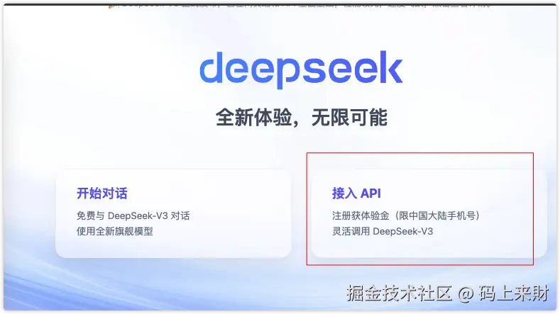 打开DeepSeek的官网,点击页面上的API接入,就会跳转到登录页面