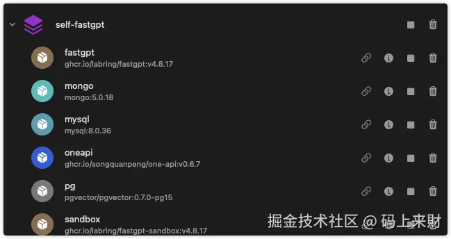 为了方便起见这里使用docker来安装FastGPT,读者机器上必须要有docker相关环境,若没有推荐MacOS用户使用 OrbStack 客户端,它相比官方的Docker Desktop轻量很多,并且开源免费,本人一直在使用。这里对docker的安装和配置就不多说了,可以前往阅读往期文章 Docker安装与配置