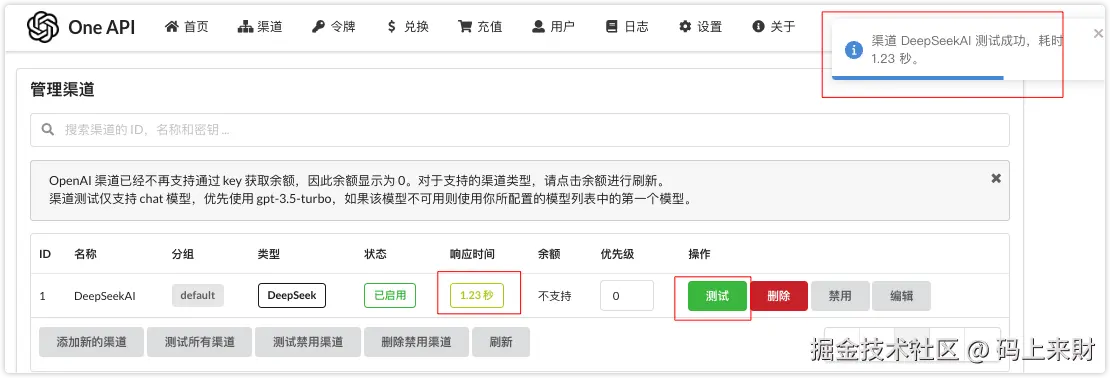 OneAPI管理模型渠道
