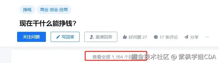 CDA数据分析师是含金量最高,知识体系最完整的,考过了CDA数据分析师一级,几乎就具备了基本的数据分析能力,8小时工作5分钟搞定。考过了二级就具备了进大厂的能力,很多大厂实战问题在备考二级的时候都会学到,想提升数据思维能力和数据分析技能的。