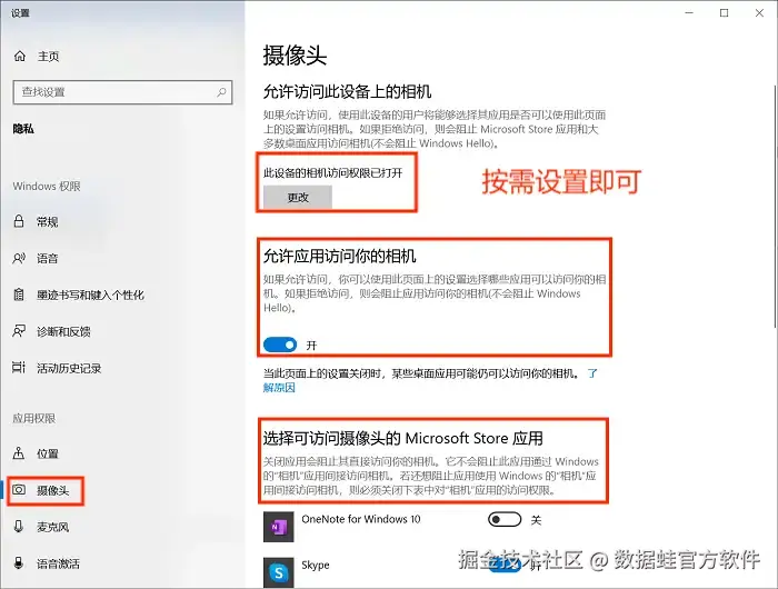 解决笔记本电脑摄像头打不开的方法一:检查并开启权限