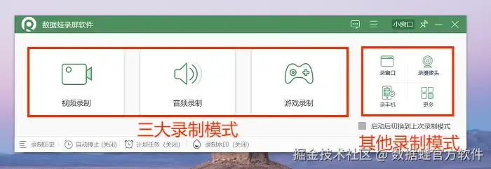 电脑录制屏幕方法二:数据 蛙录屏软件