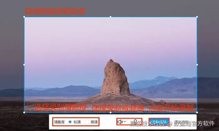 步骤2:你可以选择录制全屏或者自定义录制区域,调整麦克风和扬声器设置,最后点击“开始录制”按钮,就可以开始录制屏幕了。