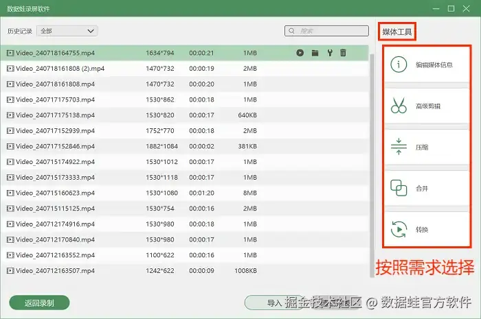 小编希望通过今天的分享,能够为大家在纷繁复杂的录屏软件市场中提供一丝清晰的指引,以上三种方法各有千秋,适用于不同的场景和需求。相信大家对于电脑怎么录制屏幕的疑问已经得到了解答。如果需要高质量的录制效果和丰富的后期处理功能,那么相对比于QQ录屏的录制不清晰,步骤记录器缺少后期处理功能来说,数据 蛙录屏软件绝对是你的不二之选。相信该录屏软件能够给你提供出色的录制体验。