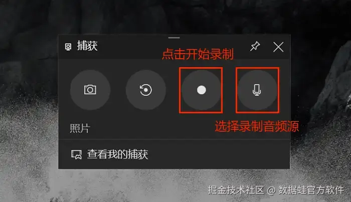 步骤1:在需要录制的页面按下快捷键“Win+G”唤出Xbox,然后选择“捕获”选项。