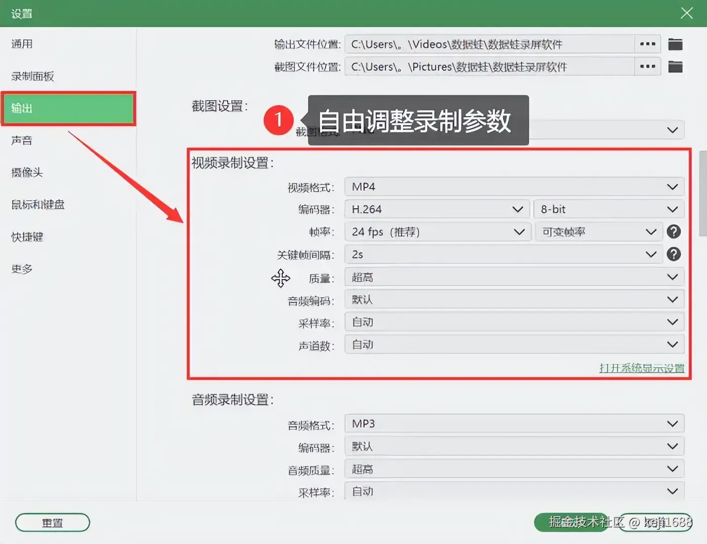 步骤2:进入软件的【设置】中可以自由调整录制参数,如录制质量、格式、帧率等内容,让录制更符合您的需求。