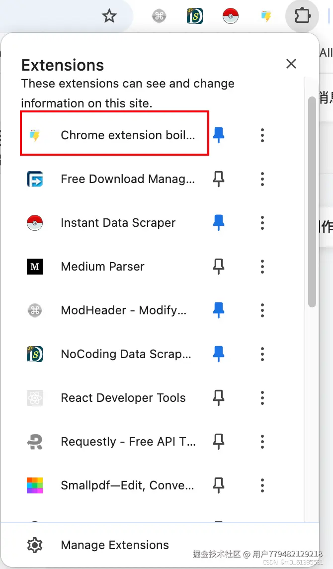 成功运行后,打开项目的文件夹,会看到一个dist文件夹,打开chrome浏览器或者其他浏览器的扩展管理页面,加载dist文件夹。