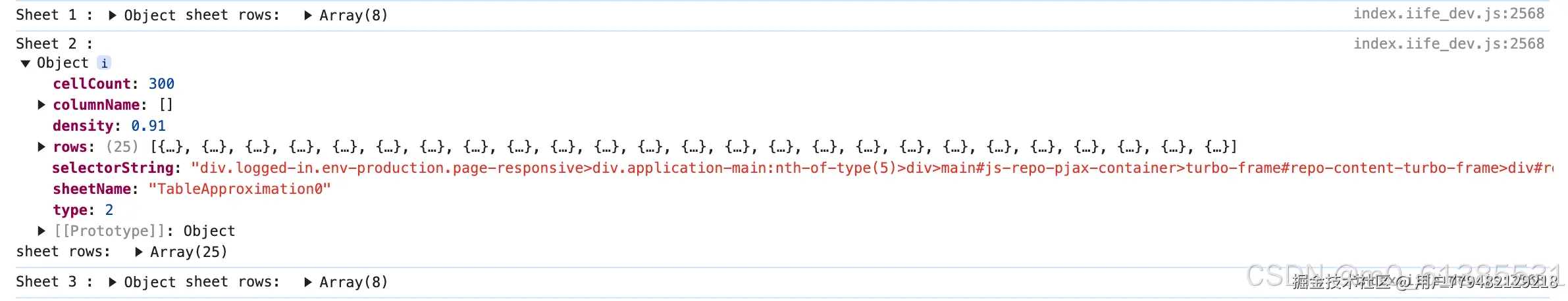 接下来,我们以react仓库的issue页面Issues · facebook/react · GitHub为例Issues · facebook/react · GitHub,跳转到页面并打开控制台,我们可以看到控制台打印出了我们在这个网页中探测到的表格数据!