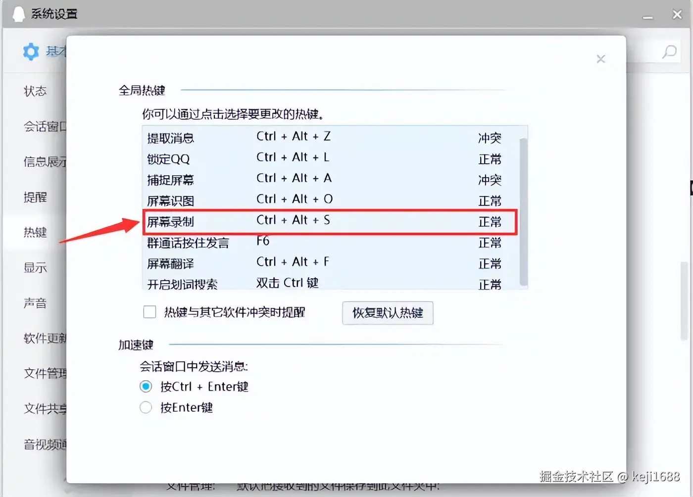 操作步骤为:打开QQ,你可以使用默认的快捷键【Ctrl+Alt+S】来启动和停止录制。这一方法适合需要在聊天过程中进行屏幕分享的用户。