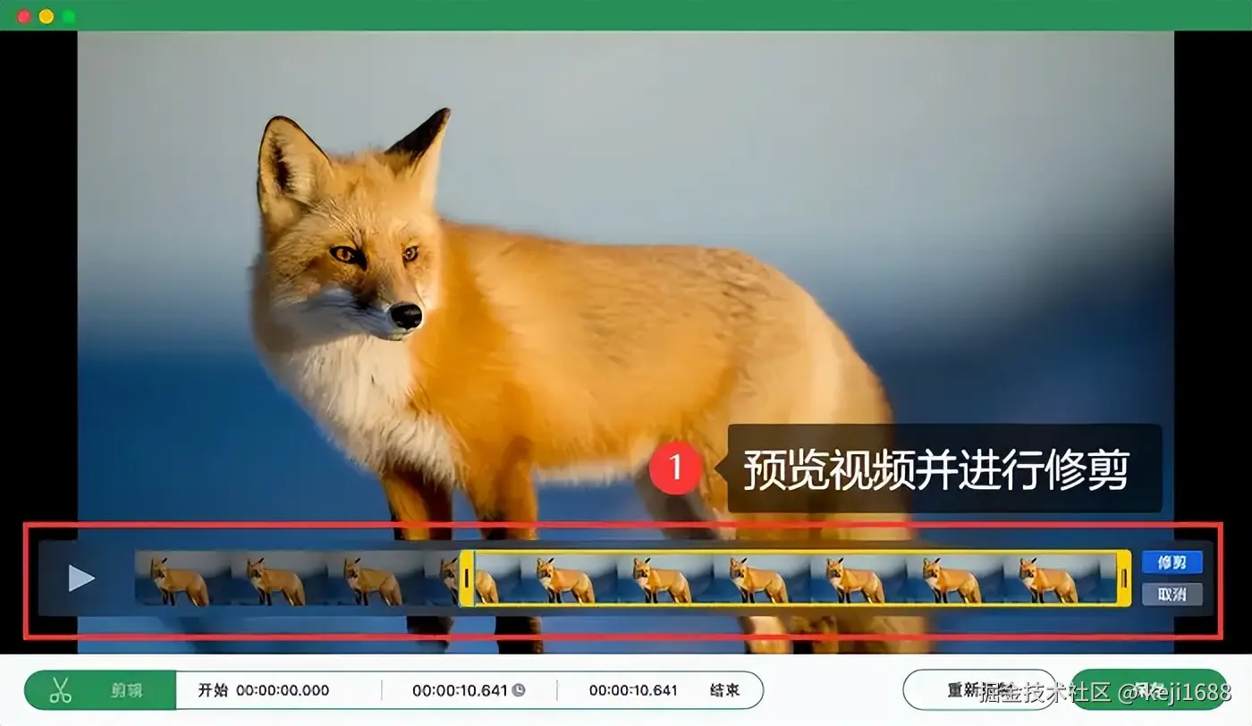 步骤3:录制结束后,可自由预览视频,在软件内对视频进行剪辑和编辑后导出。