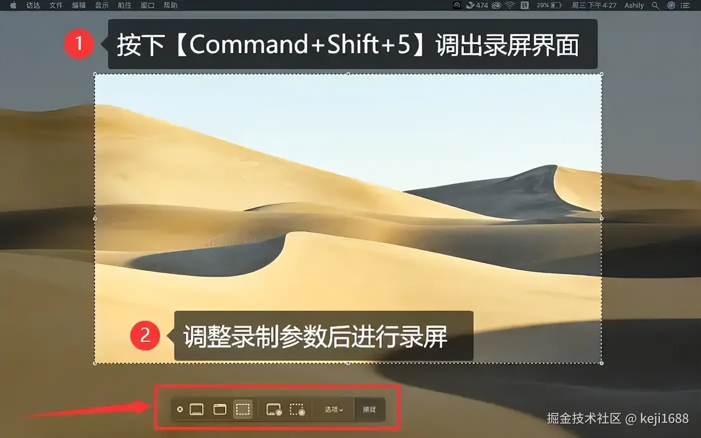Mac屏幕录制方法一:快捷键录屏
