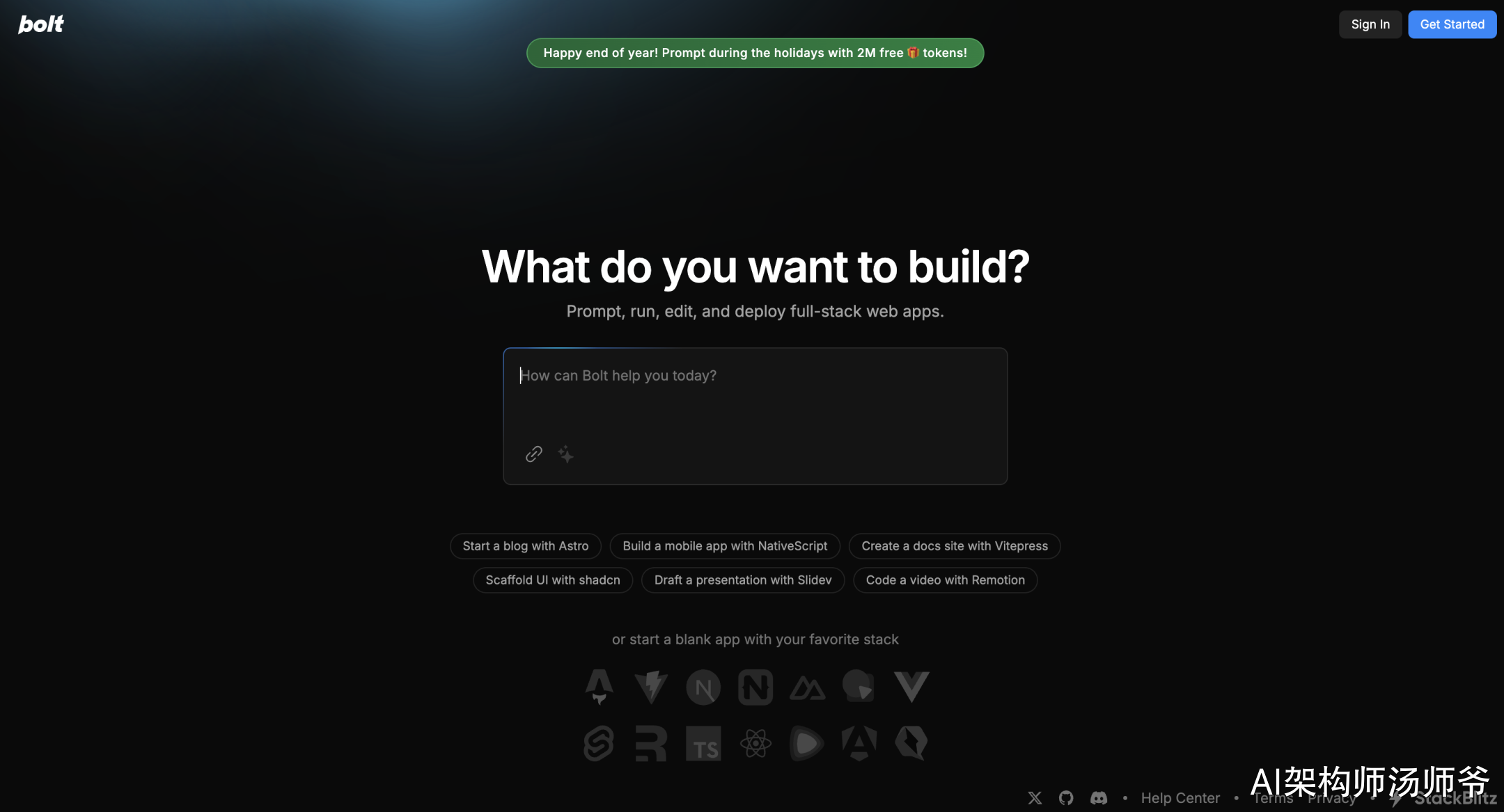 Bolt.new 的目标是让 Web 应用开发变得更加普及,使得即便是编程新手,也能通过简单的自然语言实现创意。