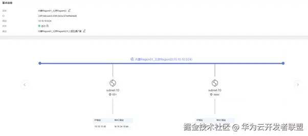 ENS是业界首个为客户提供跨资源池二层功能的云服务,ENS可以动态感知资源池内IP的申请和释放,能够感知跨资源池大二层广播域里的IP和MAC冲突,并且自动做抑制和恢复。图7是创建一个二层扩展连接两个资源池的同一个子网的拓扑图,图上还呈现了资源池的IP分布情况。
